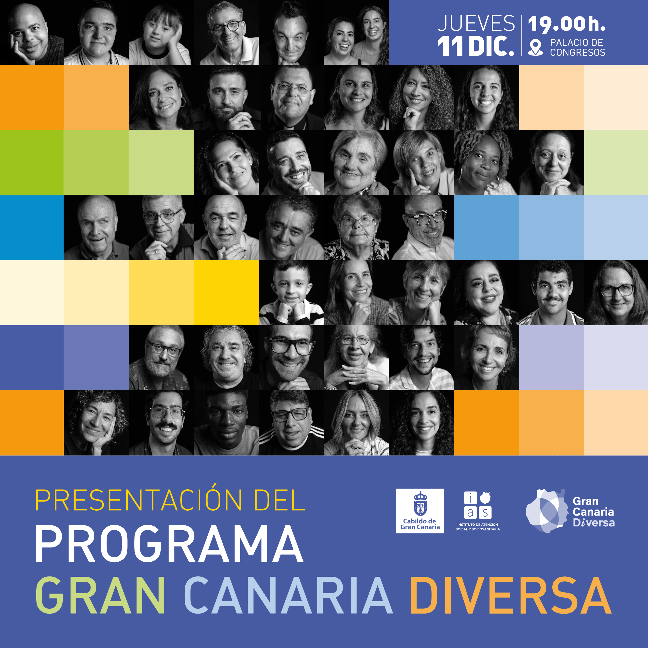 El Instituto de Atención Social y Sociosanitaria del Cabildo de Gran Canaria le invita a asistir el próximo jueves día 11 de diciembre, a las 19:00 h, en IInfecar a la presentación del Programa Gran Canaria Diversa.
